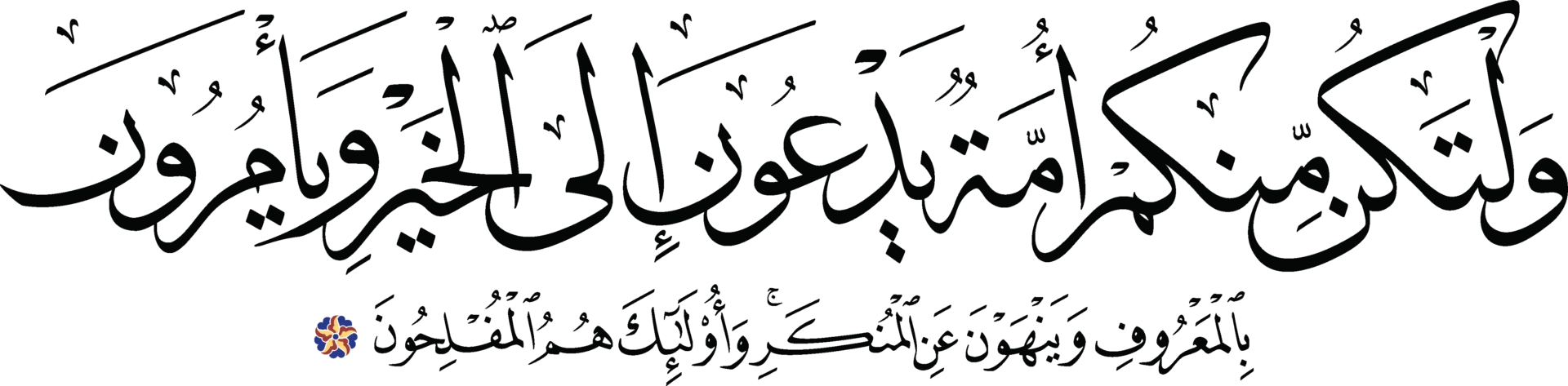 {Be a community that calls for what is good, urges what is right, and forbids what is wrong: those who do this are the successful ones.}.