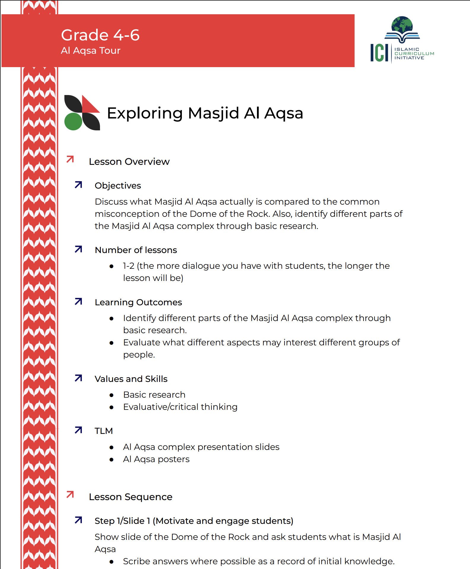 The Islamic Curriculum Initiative (ICI) came together in November 2023 as a response to the global call for urgent, sound, and principled educational resources on Palestine—grounded in the Qur’an, the Sunnah, and the enduring tradition of Muslim scholarship.